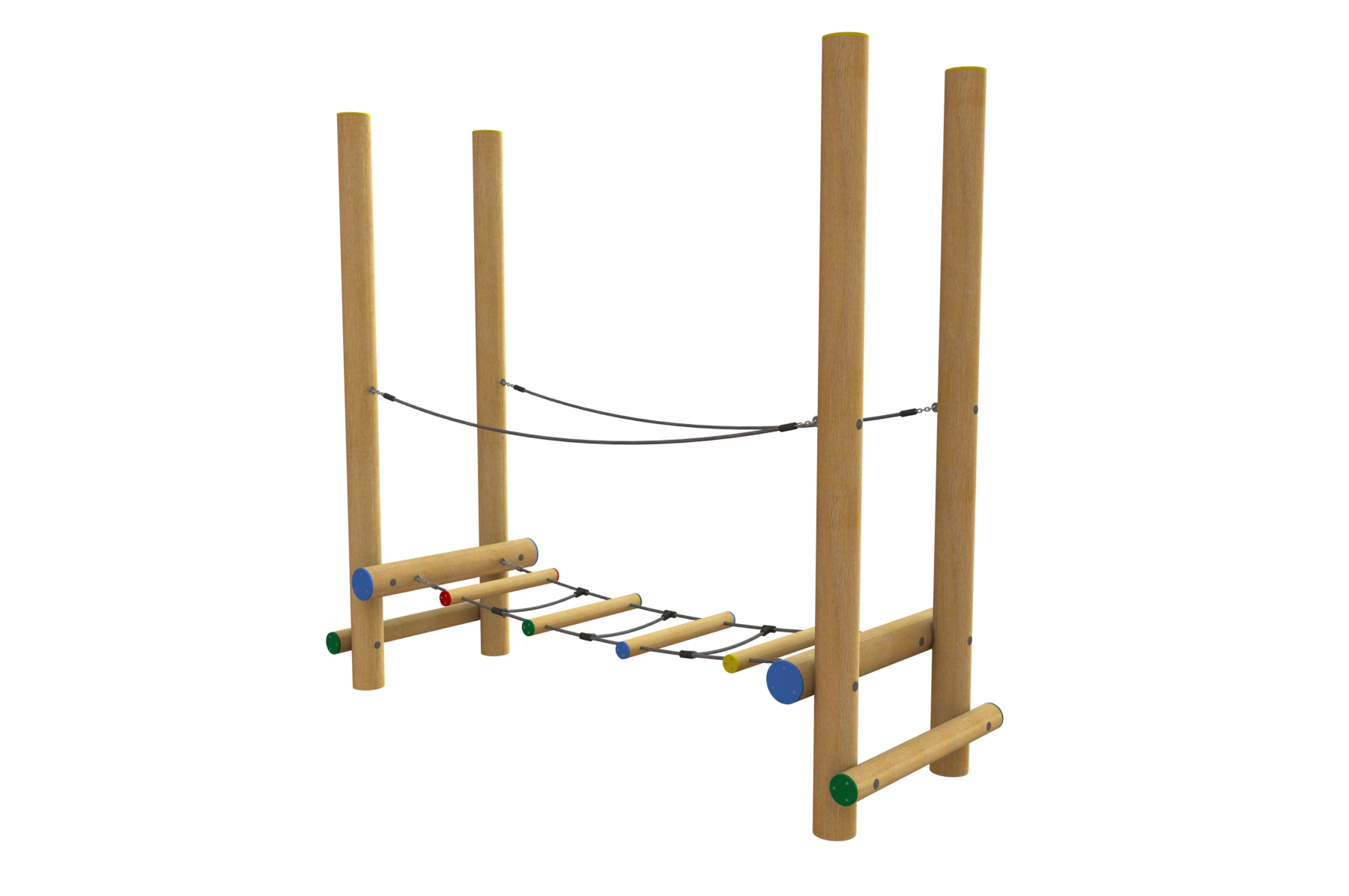Robinia evenwichtstoestel met een brug van ronde balken.