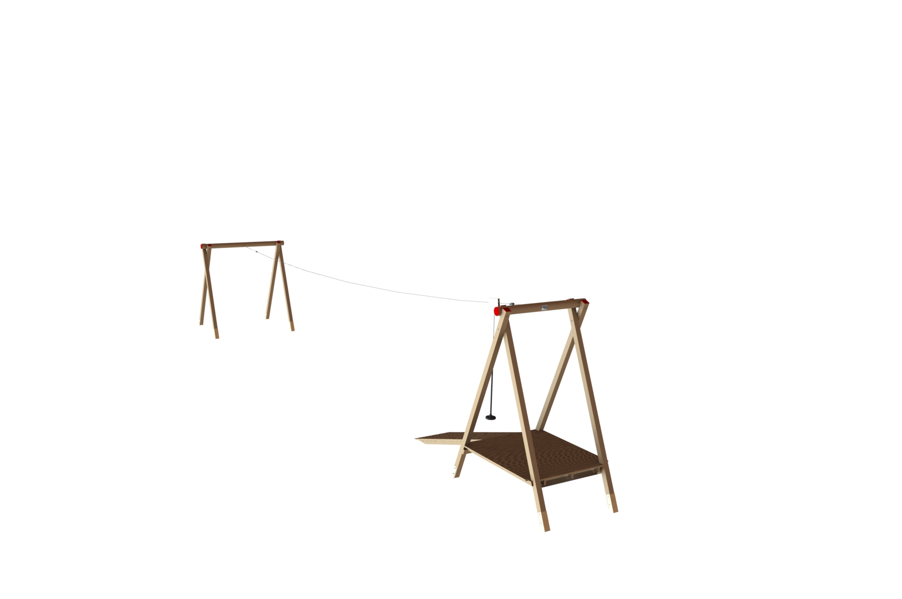 Kabelbaan met WaxedWood jukken en een startplateau.