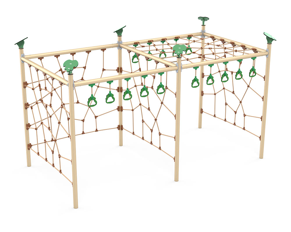 Kunststof klimtoestel dubbel met klimtouwen en ringen.
