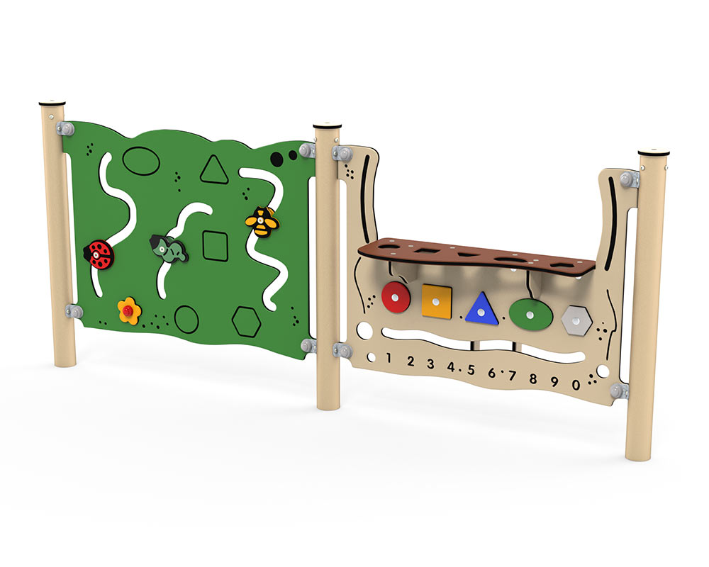 Kunststof speelpaneel met kleurrijke schuifjes.