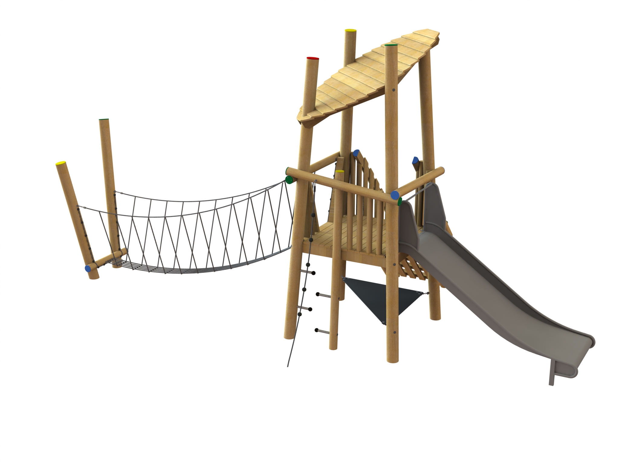 De Robinia speeltoren is een multifunctioneel speeltoestel voor de jongere schoolkinderen. Het speeltoestel is een combinatie van een klimtoren met verschillende speelonderdelen. Kinderen kunnen naar boven klimmen via de trap, de touwbrug of het klimtouw. Vervolgens kunnen ze weer naar beneden via de glijbaan. Door de gekleurde paalkapjes op de palen hebben de kinderen nog meer speelwaarde en speelbeleving!