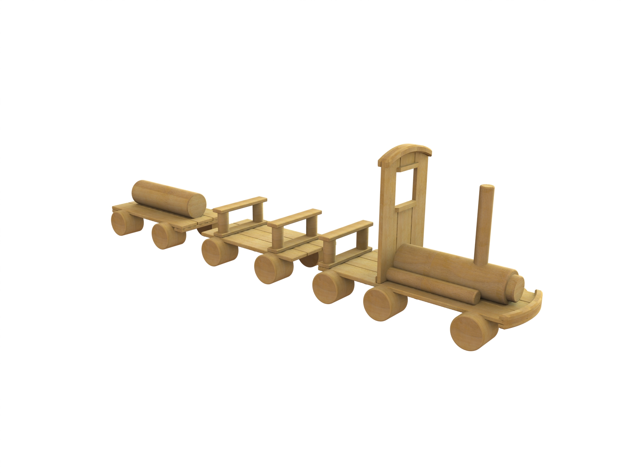 De speeltrein wordt, net als de andere speeltoestellen in ons natuurlijk spelen assortiment, gemaakt van spintvrij Robinia hout. Het speeltoestel heeft een valhoogte van 44 centimeter. De speeltrein kan recht gemonteerd worden in de grond maar ook in een bocht voor een nog speelser effect.