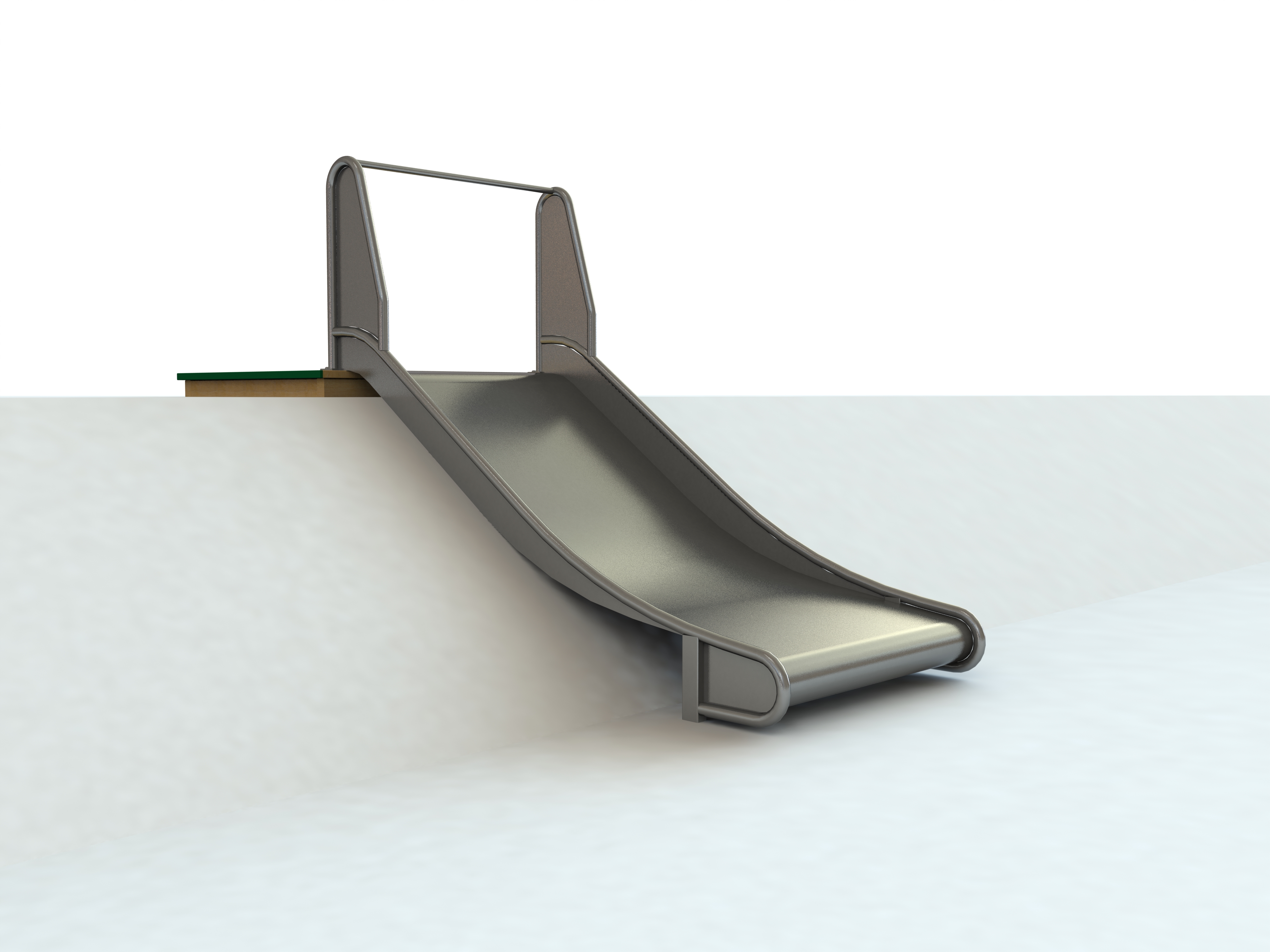 WaxedWood bordes met RVS glijbaan van een meter breed voor een heuvel van 100 centimeter hoog.