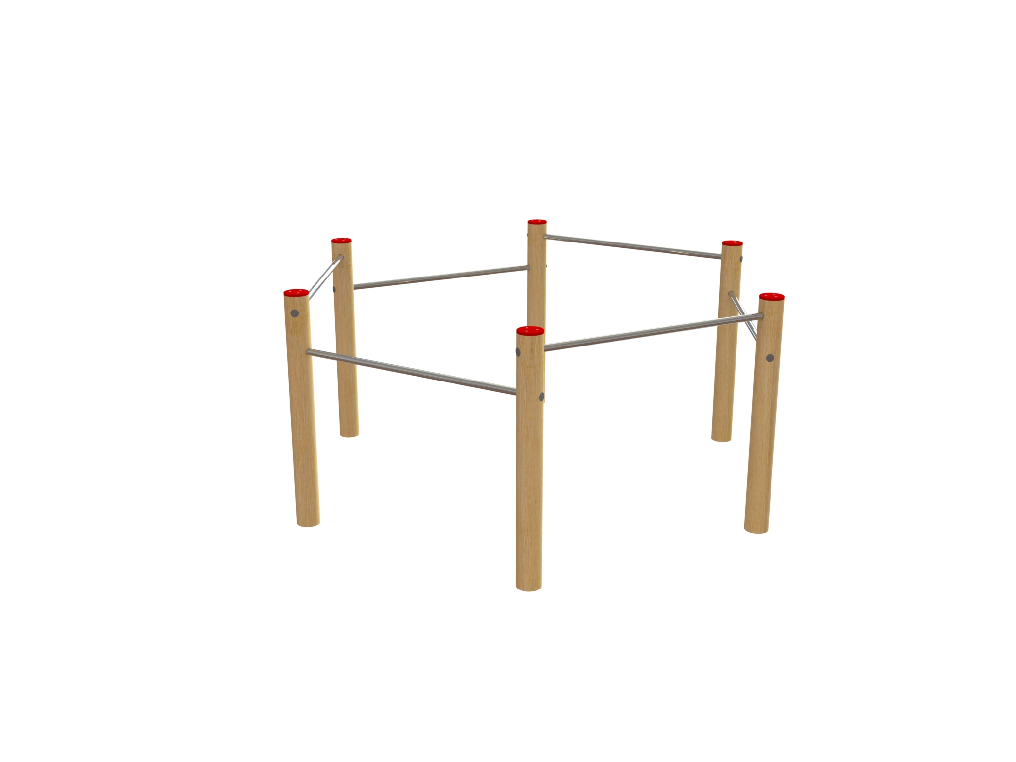 Het Robinia Zeshoekig Duikelrek met RVS duikelstang is een onmisbaar speeltoestel in je speeltuin of speelplaats. Naast kunstjes oefenen en rondjes draaien kunnen, vooral meiden, duikelrekken ook gebruiken als verzamelplaats om te kletsen. Bij dit duikelrek kan je zelfs met z'n zessen bij elkaar spelen!